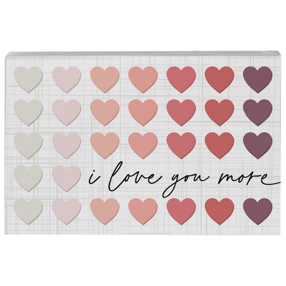Keywords: love, decor, hearts, romantic, gradient, handmade, wooden sign, desk decoration, shelf display, USA-made