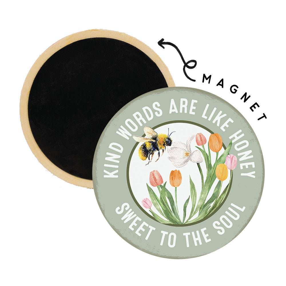 This round piece is composed of MDF with a magnetic backing to use as a magnet. The natural variations in the wood make each piece unique. Product Dimensions - 2.5” x 2.5” x .25”. Product weight - .08 oz. Proudly designed, handcrafted, and printed in the USA by Sincere Surroundings.