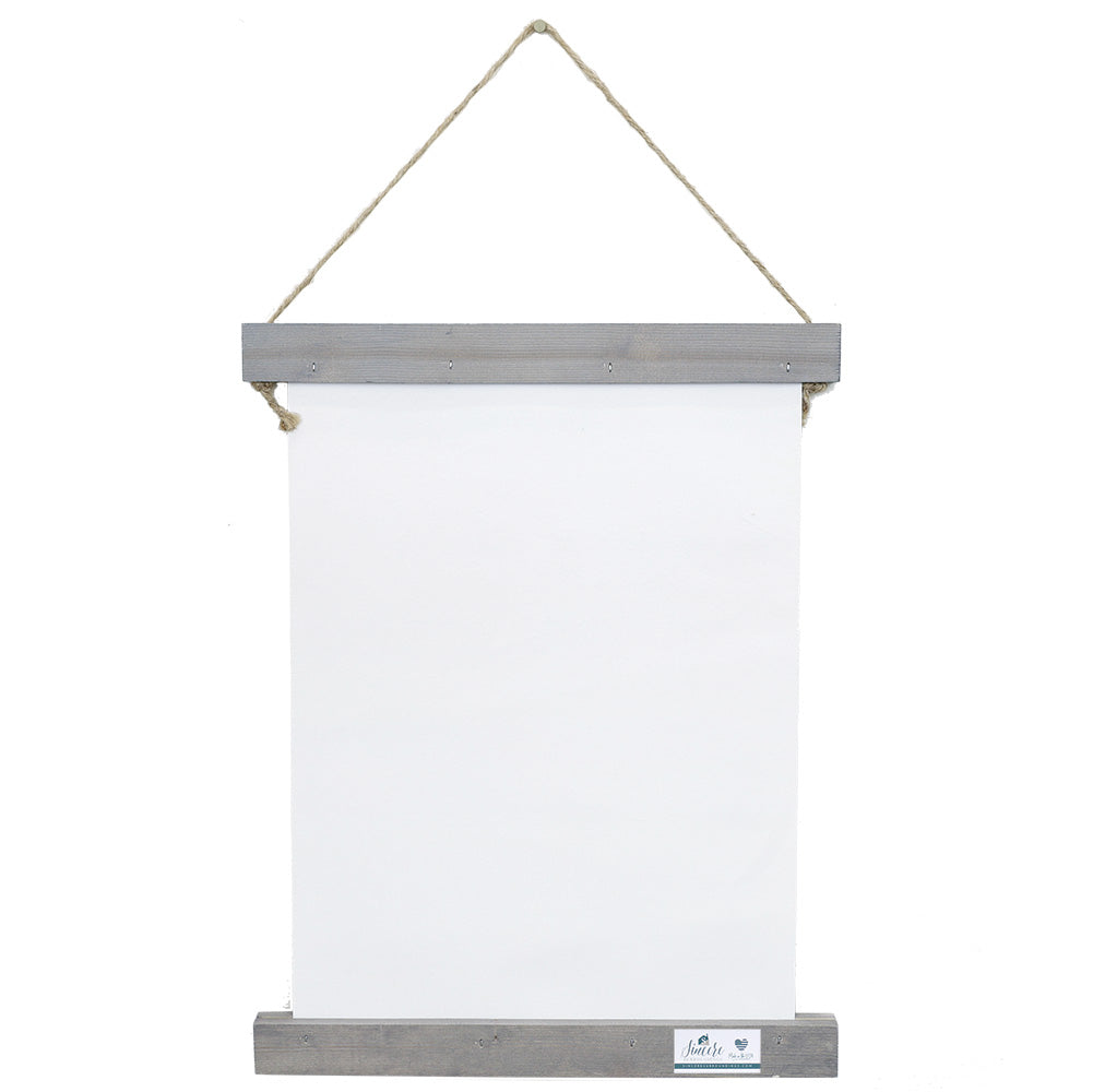 This beautiful hand-crafted hanging canvas is composed of a wood frame on top and bottom, held by jute twine. The simplistic design is printed on sturdy canvas. This piece comes in sizes M, A, & B. Dimensions are 10" x 17" x .375" -- 15.5” x 28” x .75” -- 22" x 38" x .75”. Product Weight – 8 oz, 9.6 oz, & 16 oz. Proudly designed, printed, and made in the USA by Sincere Surroundings.