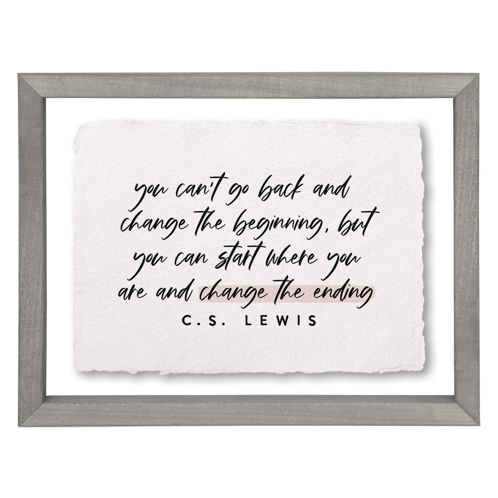 Additional Info: Inspirational Quote (This quote by C.S. Lewis is a motivational reminder that while we can't change the past, we have the power to shape our future. This timeless piece of decor is perfect for inspiring anyone to take control of their journey and make meaningful changes.) - motivation, encouragement, hope, transformation, elegant design, solid wood frame, tabletop display, wall hanging, plexiglass, USA made