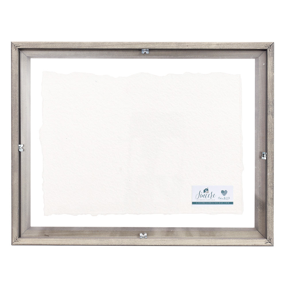 This piece is composed of a solid wood frame that secures the elegant design on paper mâché between two pieces of plexiglass. The depth of the frame also allows for tabletop display or a wall hanging application. 14 x 11 x 1.5. Product weight 21 oz. Proudly designed, printed, and made in the USA by Sincere Surroundings.