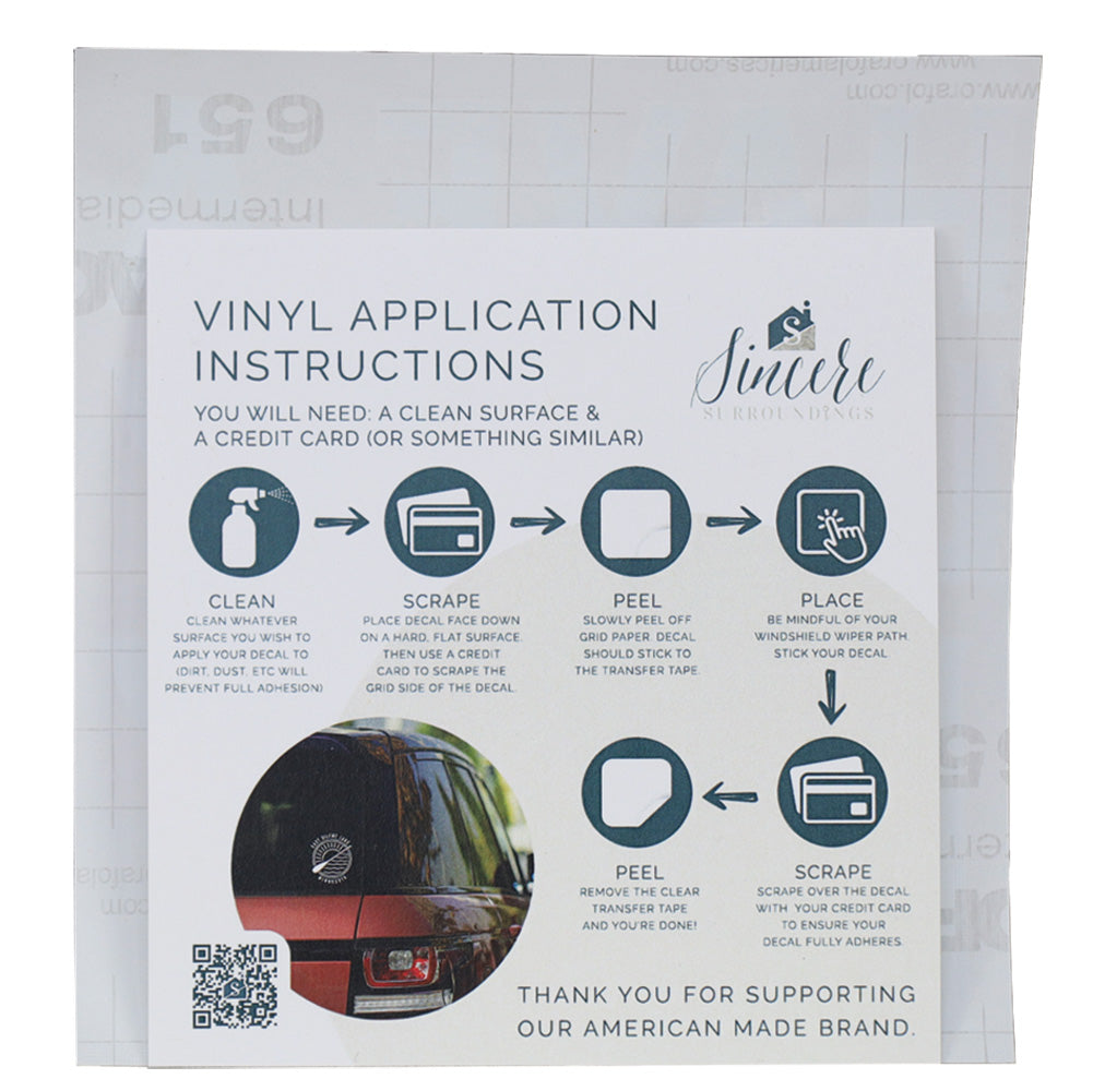 Comes in durable white vinyl with application instructions. Individually packaged. Sold in sets of 5. Proudly designed & made in the USA. Dimensions 5”x5”